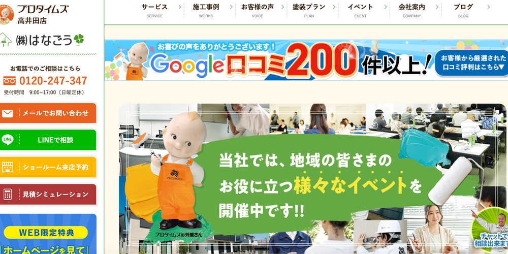 プロタイムズ高井田店(株式会社はなごう)は、東大阪市に特化した施工実績を豊富に持つ業者として知られています。